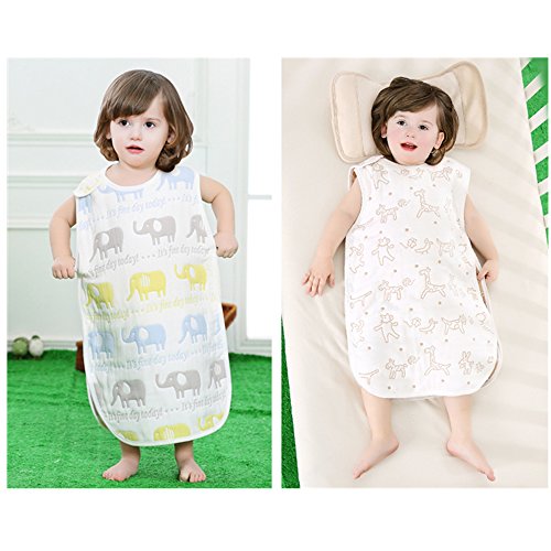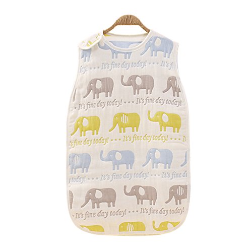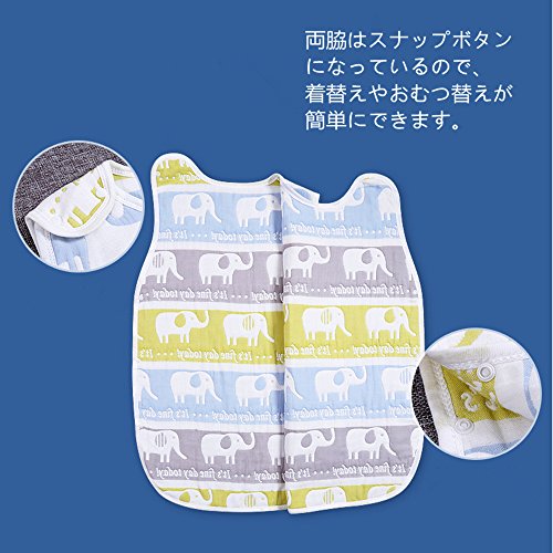 Petit Bella オールシーズン 6重ガーゼスリーパー パジャマ 100%コットン 綿 通気 新生児 赤ちゃん ベビー 子供 ボタン開閉式 プレゼント 出産祝い (L, 象さん)