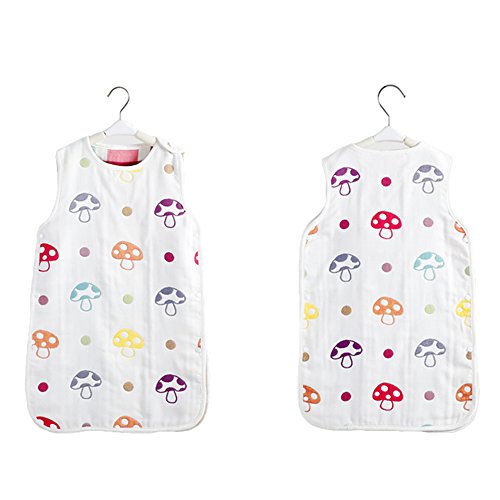 Petit Bella 年中使い 6重ガーゼスリーパー パジャマ 通気 子供服 ベビー服 寝袋 100%コットン 綿 子供 赤ちゃん ボタン開閉式 プレゼント 出産祝い (S, キノコ柄)