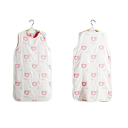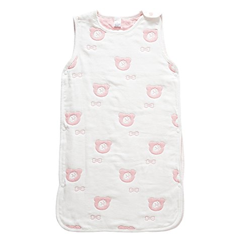 Petit Bella 年中使い 6重ガーゼスリーパー パジャマ 通気 子供服 ベビー服 寝袋 100%コットン 綿 子供 赤ちゃん ボタン開閉式 プレゼント 出産祝い (L, ピンククマ柄)
