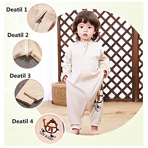 Petit Bella オーガニックコットン スリーパー 寝袋 春 夏用 子供 ベビー 赤ちゃん 綿 薄手 プレゼント 出産祝い (XL, ペンギン-Type2(長袖))