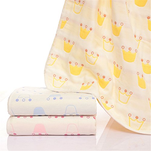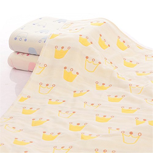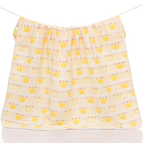Petit Bella おくるみ ガーゼタオル 新生児 6重ガーゼケット ベビー 赤ちゃん オールシーズン 大判 100%コットン 通気 吸汗 保温 出産祝い 110×110cm(110×110cm, イエロー クラウン柄)
