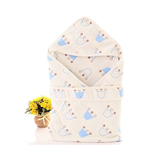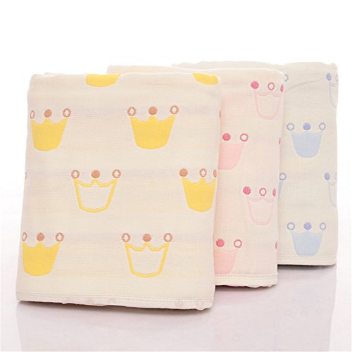 Petit Bella フード付き おくるみ ガーゼタオル 新生児 6重ガーゼケット ベビー 赤ちゃん オールシーズン 大判 100%コットン 通気 吸汗 保温 出産祝い(ブルー クラウン柄)