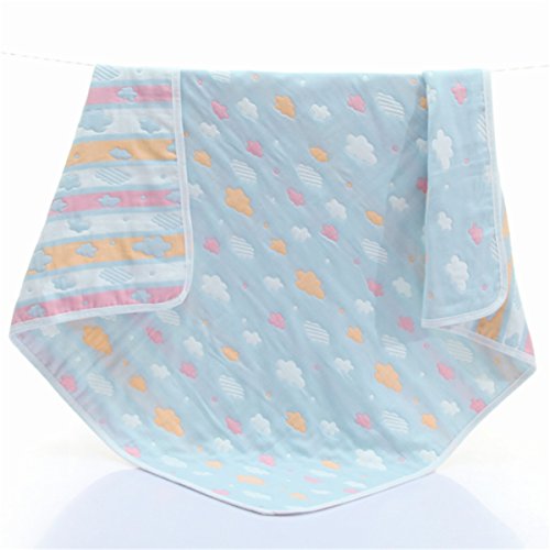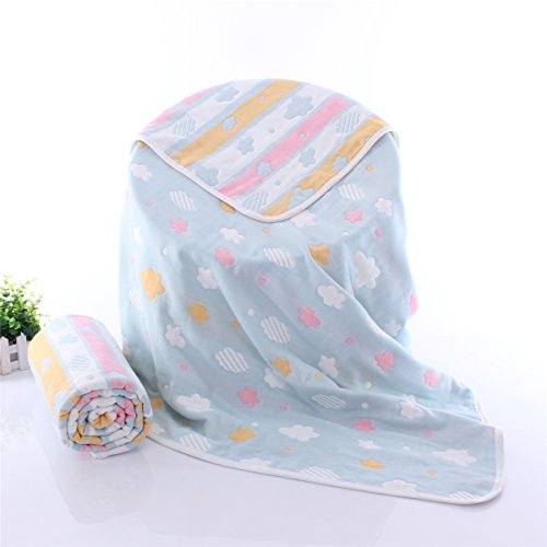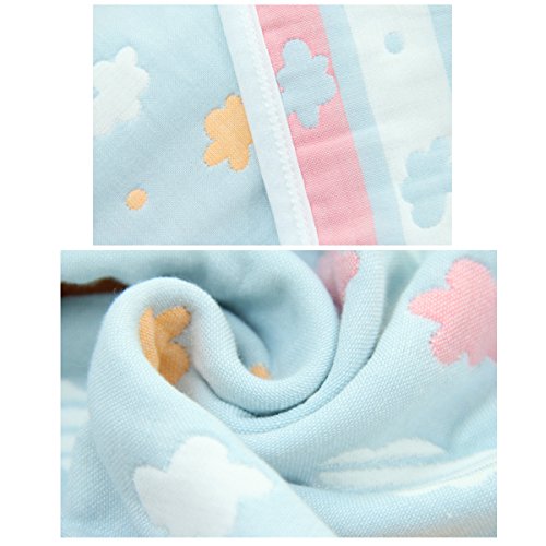 Petit Bella フード付き おくるみ ガーゼタオル 新生児 6重ガーゼケット ベビー 赤ちゃん オールシーズン 大判 100%コットン 通気 吸汗 保温 出産祝い 90×90cm (雲--ブルー)