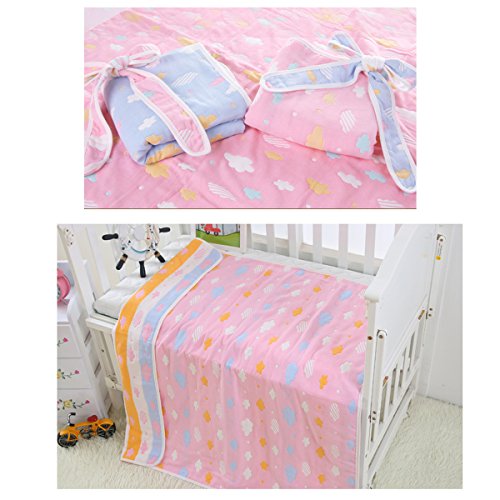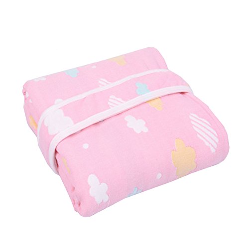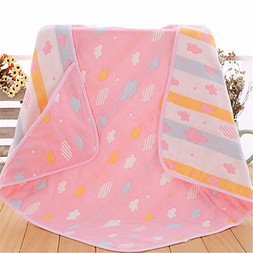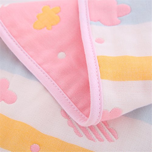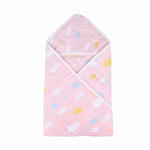 Petit Bella フード付き おくるみ ガーゼタオル 新生児 6重ガーゼケット ベビー 赤ちゃん オールシーズン 大判 100%コットン 通気 吸汗 保温 出産祝い 90×90cm (雲--ピンク)