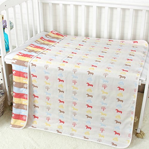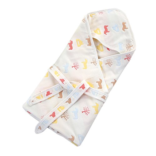 Petit Bella フード付き おくるみ ガーゼタオル 新生児 6重ガーゼケット ベビー 赤ちゃん オールシーズン 大判 100%コットン 通気 吸汗 保温 出産祝い (うま柄)