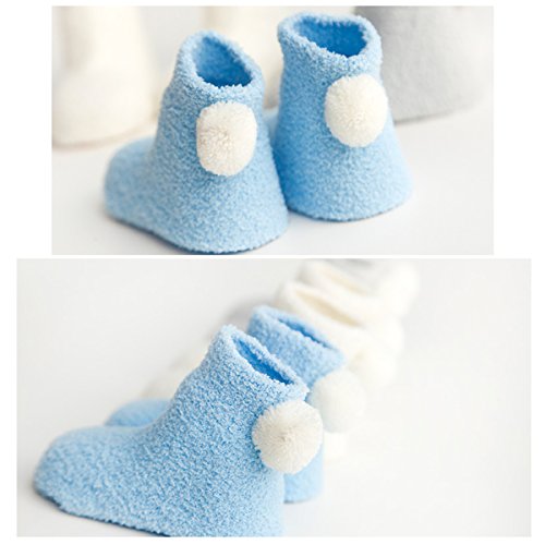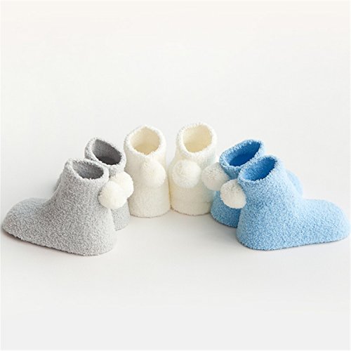 可愛い ボール付き ソックス 靴下 ベビー 新生児 赤ちゃん キッズ 子供 女の子 男の子 秋冬 コーラフリース 白 保温 お祝い 出産祝い ギフト 3足セット 0-3歳 (L(1-3歳), セット 1)