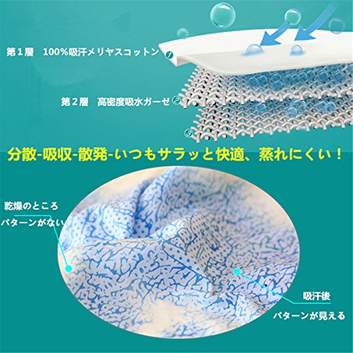 - 【単向伝湿技術】 第1層は吸汗メリヤスコットンファブリック、第2層は高密度吸水2重ガーゼ、 吸汗綿の通気性は普通のガーゼよりの通気性が高くなり,吸汗性能も良くなっている。 吸汗綿はしっかり汗を吸収してくれてガーゼーに導き、ガーゼーは水分を散発します。 分散-吸収-散発-全面通気だから、表面はいつもサラッと快適、蒸れにくい!