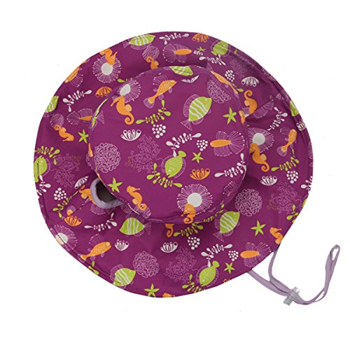 帽子 ハット サンハット 両面使える 速乾 あごひも付 つば広 日よけ UVカット キッズ 子供 夏 女の子 男の子 ビーチ ピックニック アウトドア (頭周り54cm-パープル)