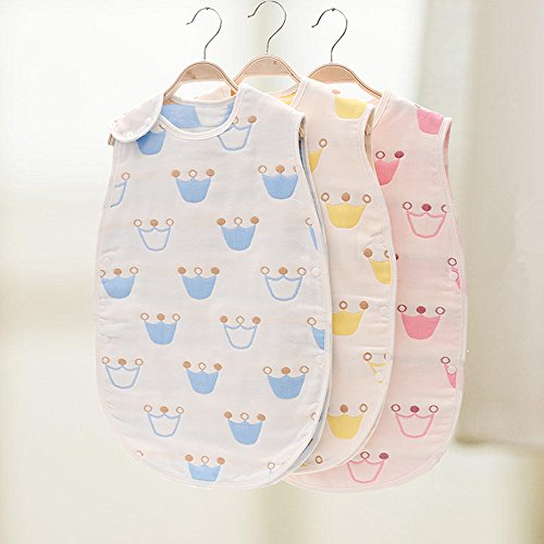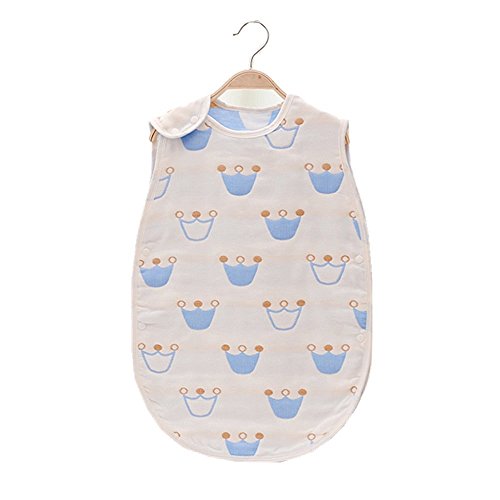 Petit Bella 6重ガーゼスリーパー パジャマ 寝袋 ベビー 赤ちゃん 子供 100%綿 オーガニックコットン ボタン開閉式 プレゼント 出産祝い(クラウン柄 ブルー M)