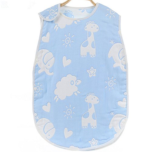 Petit Bella 6重ガーゼスリーパー パジャマ 寝袋 ベビー 赤ちゃん 子供 100%綿 オーガニックコットン ボタン開閉式 プレゼント 出産祝い (動物柄 ブルー S)
