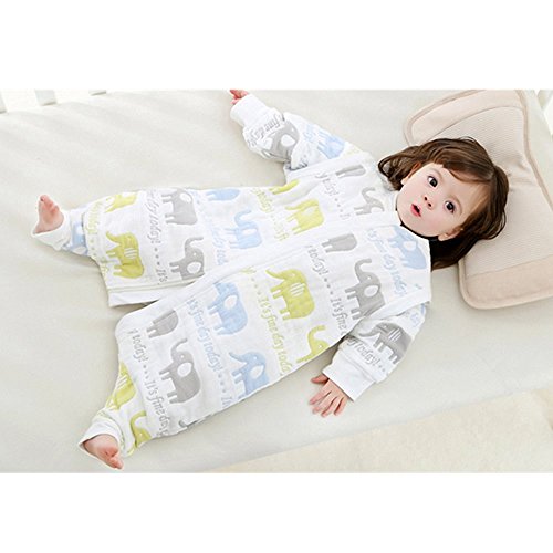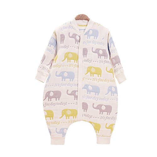 Petit Bella 6重ガーゼスリーパー 秋冬用 長袖 2Way パジャマ ベビー 寝袋 100%綿 通気 子供 赤ちゃん プレゼント 出産祝い (L, 長袖ー象柄)