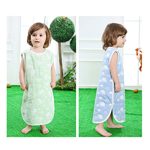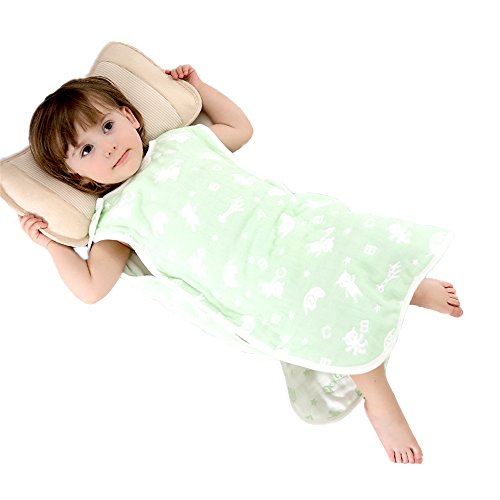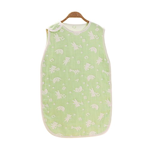 Petit Bella オールシーズン 6重ガーゼスリーパー パジャマ 100% コットン 綿 通気 新生児 赤ちゃん ベビー 子供 ボタン開閉式 プレゼント 出産祝い (S, グリーン動物)