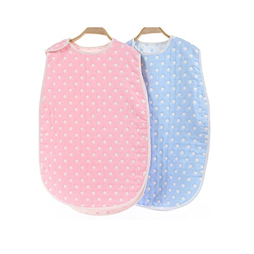 Petit Bella ベビー 6重ガーゼスリーパー パジャマ 寝袋 綿 子供 赤ちゃん プレゼント 出産祝い 雲柄 水玉柄 ドット ハート柄 (S, 水玉-ピンク)