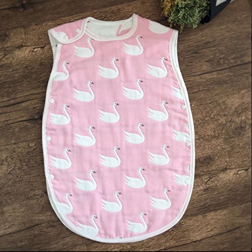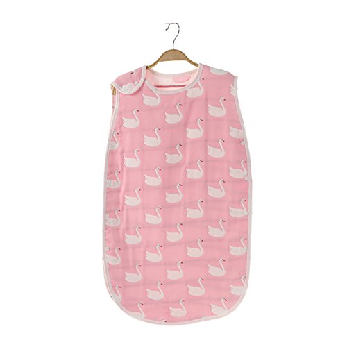 Petit Bella ベビー 6重ガーゼスリーパー パジャマ 寝袋 綿 子供 赤ちゃん プレゼント 出産祝い 雲柄 水玉柄 ドット ハート柄 (M, スワン柄)