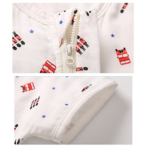 Petit Bella 短袖 4重ガーゼ スリーパー 寝袋 パジャマ ベビー 子供 赤ちゃん 夏用 コットン 綿 薄手 ジッパー開閉式 出産祝い ギフト プレゼント (M, クルマ柄)