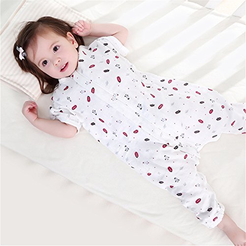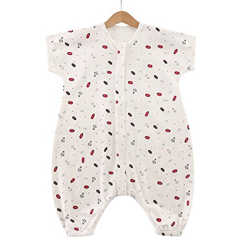 Petit Bella 短袖 4重ガーゼ スリーパー 寝袋 パジャマ ベビー 子供 赤ちゃん 夏用 コットン 綿 薄手 ジッパー開閉式 出産祝い ギフト プレゼント (M, ラケット柄)