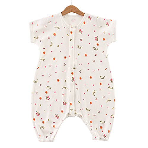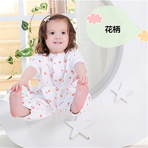 Petit Bella 短袖 4重ガーゼ スリーパー 寝袋 パジャマ ベビー 子供 赤ちゃん 夏用 コットン 綿 薄手 ジッパー開閉式 出産祝い ギフト プレゼント (XL, 花柄)