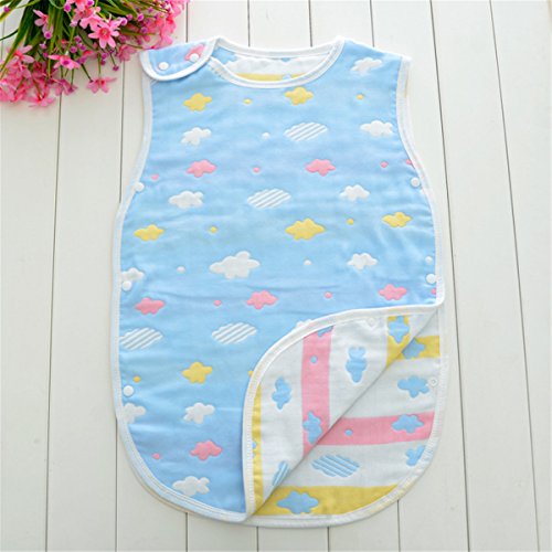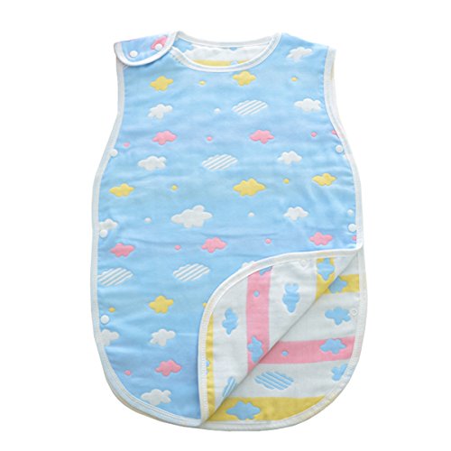 Petit Bella 6重ガーゼスリーパー パジャマ 寝袋 ベビー 赤ちゃん 子供 100%綿 オーガニックコットン ボタン開閉式 プレゼント 出産祝い (S, クモ柄 ブルー)