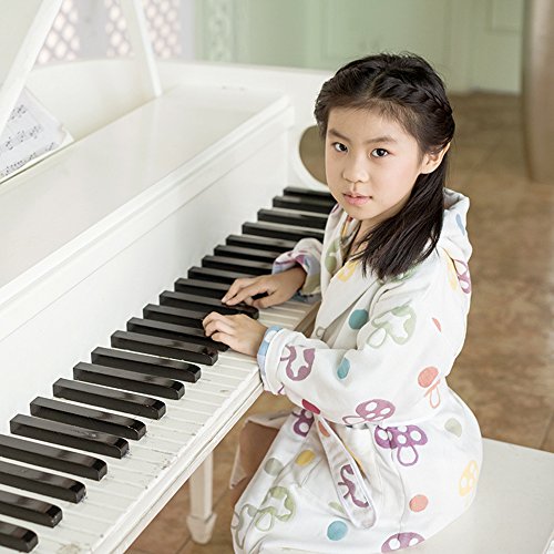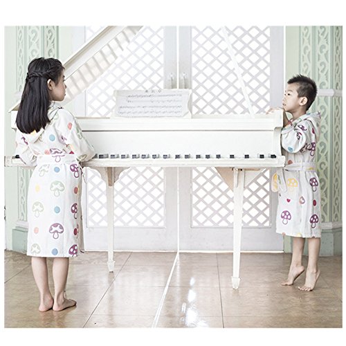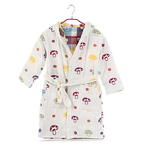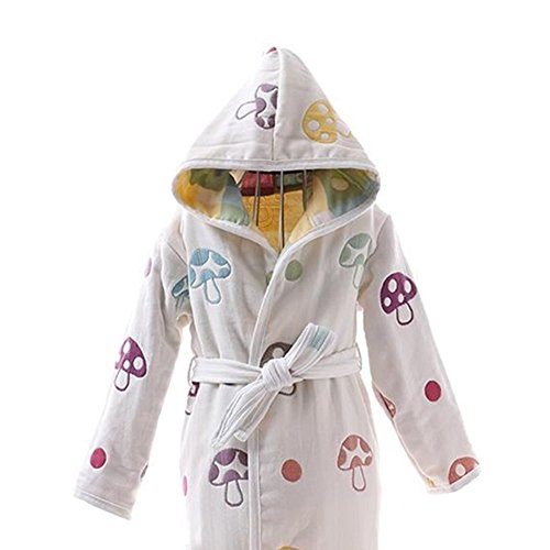 Petit Bella 6重ガーゼ ベビー 子供用 バスロープ フード付き タオル地 可愛い木の子柄 (S(身長90-110cm))