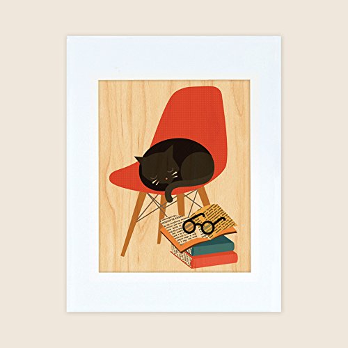 - Petit Collage Unframed Print on Wood Wall Decor, Book Cat, Large