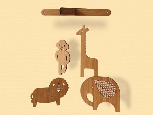 アメリカ、プチ・コラージュの動物園の人気が集まったインテリアにも素敵なモダンデザインの木製モビールです。 ゾウ、キリン、モンキー、ライオンさんが、お部屋を愉快に楽しくしてくれます。 やさしく揺れるモビールをみながら、赤ちゃんもいい夢がみられそう。。。 プチ・コラージュのバンブーモビールは、アメリカで人気のイラストレーターLorena Siminovichによってデザインされています。 こちらの木製モビールは収穫竹合板で出来ており、地球に優しい再生可能な資源からレーザーカットされて生まれました。 目と手の協応の発達を促し、情緒を豊かにしてくれるモビールは、生まれてすぐの赤ちゃんに最適のプレゼントです。 出産祝いや子供部屋のインテリアに素敵ですね。 【バンブーモビールのお取扱いについて】 ○モビールはわずかな風をとらえて動く様子をご覧頂くものですので、幼児の手の届かないところに飾ってください。 ○風の強い場所に飾るのはお止め下さい、糸は絡まる場合がございます。 ○直射日光は避けてください。糸の老化や色あせ・変形など本体が傷む恐れがございます。 ○モビールの吊り下げる際には十分耐えられる場所にお取り付けください。 ○落下すると、けが・破損の原因となります。 開閉時に糸や針金などに弱った部分のないことを良くご確認の上お飾り下さい。 ○また、定期的にモビールの状態を点検なさるようおすすめします。 ○安全のため、ベビーベットの頭上やソファ、ベッドの真上には飾るのはお止め下さい。