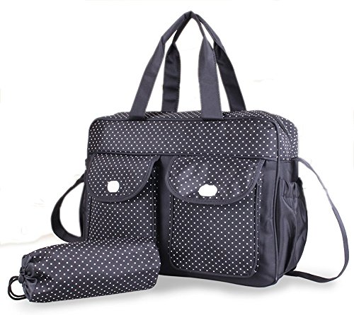 (プチプライム) Petit Prime 軽量 多機能 マザーズバッグ ショルダー 手提げ トート ママ バッグ ベビー 水玉 ドット おしゃれ かわいい (Free, ブラックドット小)