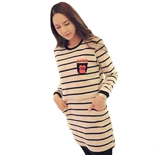 (プチプライム) Petit Prime レディース 産後 ワンピース 可愛い 人気 オシャレ マタニティ 授乳服 産後 産前 妊婦 散歩 ファッション シンプル カジュアル 入院 授乳口 ボーダー 秋 出産 春 白 (フリー, ボーダー)