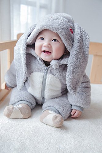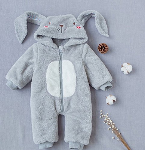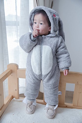 (プチプライム) Petit Prime ベビー&キッズ用 ファション カバーオール ロンパース 着ぐるみ キッズコスチューム 子供 男の子 女の子 出産 祝い パジャマ 防寒着 もこもこ ウサギ グレー (90, グレー)