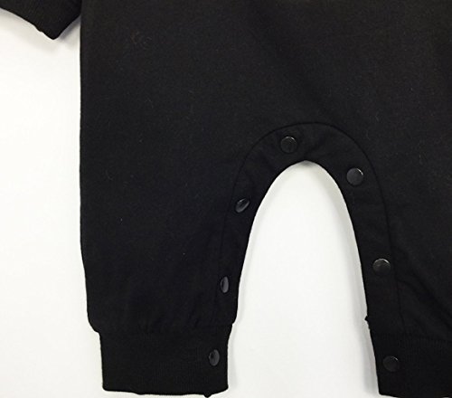 (プチプライム) Petit Prime ロンパース ベビー 赤ちゃん スーツ プリント お呼ばれ タキシード 蝶ネクタイ カバーオール 結婚式 パーティー お披露目 記念撮影 出産祝い 可愛い キュート スナップ仕様 ふわふわ コットン 黒 ブラック (80cm, ブラック)