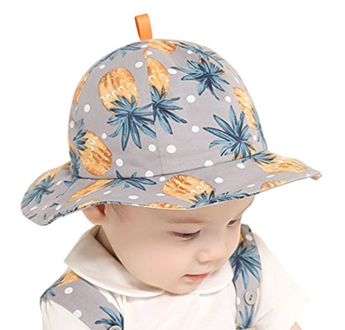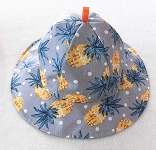 (プチプライム) Petit Prime パイナップル ボタニカル 柄 ノースリーブ ロンパース 帽子 ハット 女の子 ベビー 夏 (帽子, グレー)