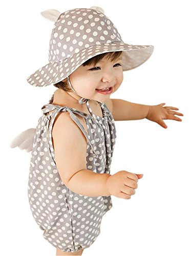 (プチプライム) Petit Prime ドット 柄 天使の羽 キャミソール ロンパース カバーオール ベビー服 女の子 夏 コンビネゾンかわいい オレンジ ブルー グレー (80, グレー)