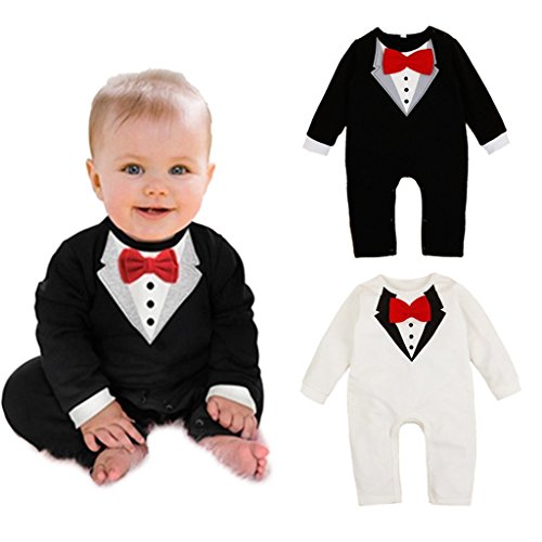 (プチプライム) Petit Prime ロンパース ベビー服 赤ちゃん カバーオール タキシード スーツ パンツ リボン 可愛い お洒落 結婚式 二次会 記念撮影 プレゼント 出産祝い ブラック ホワイト オールシーズン 長袖 (95, ブラック)