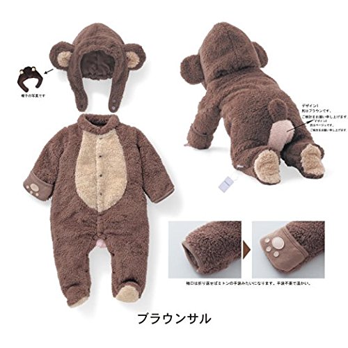 (プチプライム) Petit Prime ハロウィン クリスマス 衣装 子供 フリース フード付 クマ 着ぐるみ ベビー服 男の子 女の子 (95, サル(ブラウン))