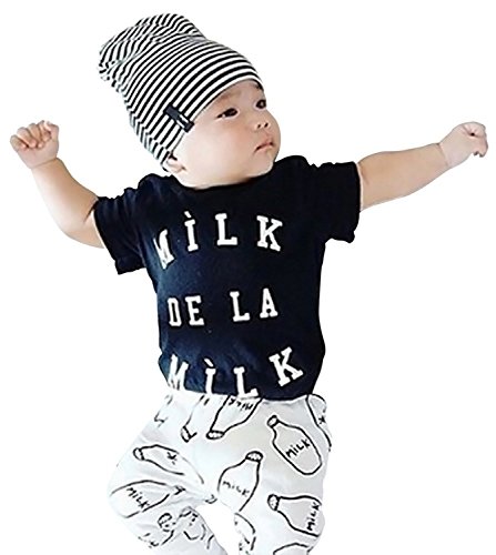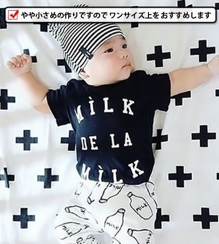 (プチプライム) Petit Prime ベビー Tシャツ ミルク 可愛い 人気 オシャレ プリント 半袖 哺乳瓶 赤ちゃん トレンド トップス ファッション シンプル カジュアル ボトム 子供服 パンツ 夏 男の子 春 黒 (100, ブラック)