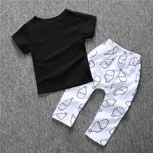 - ロゴプリントがオシャレな半袖Tシャツと、ミルク瓶プリントがキュートなパンツの2点セットです。