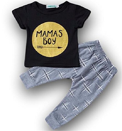 - 個性的なデザインが目を引くプリントTシャツとロングパンツの上下セットアップの販売です。