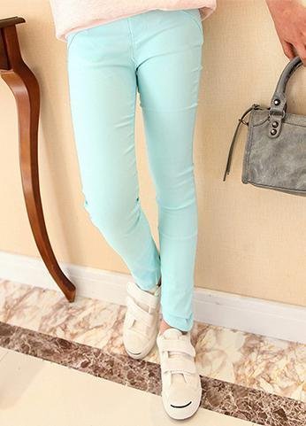 (プチプライム) Petit Prime キッズカラーパンツ 長ズボン 春秋 キャンディーカラー 女の子 カジュアルパンツ シンプル お洒落 普段着 おでかけ 全6色展開 ピンク イエロー パープル ホワイト グリーン オレンジ パステルカラー (120, グリーン)