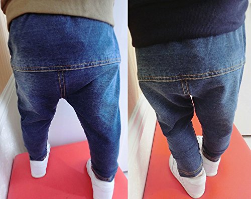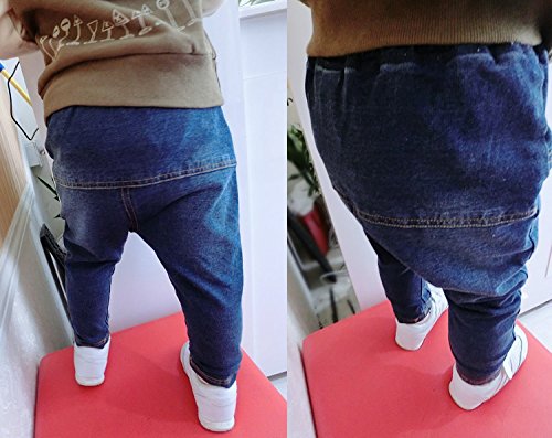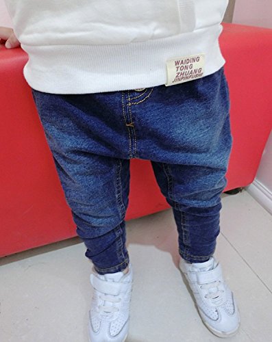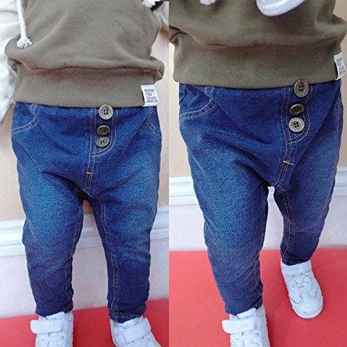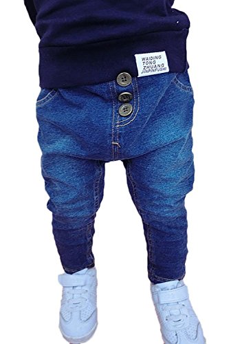 (プチプライム) Petit Prime ボトムス サルエル デザイン デニム パンツ ウエスト ゴム 飾り ボタン ジーンズ 子供服 男の子 女の子 お洒落 カジュアル かっこいい 人気 可愛い 春 夏 ブルー (100, デニムブルー )
