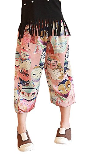 (プチプライム) Petit Prime パンツ 子供服 女の子 エスニック ふくろう サルエル カジュアル 9分丈 ズボン ボトムス 派手 インパクト 裾しぼり 可愛い 春 夏 キュート お洒落 カジュアル ピンク (130, ピンク)
