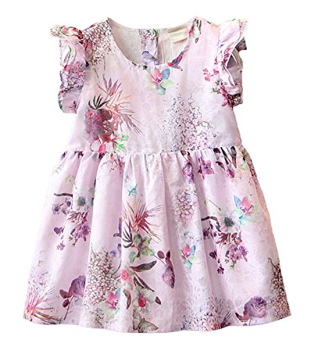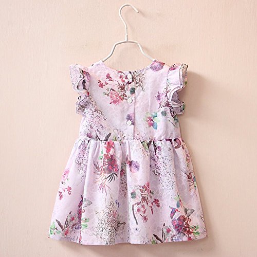(プチプライム) Petit Prime ベビー ワンピース 花柄 可愛い 人気 オシャレ 可愛い 女の子 キッズ 水彩画風 トレンド フリル ファッション ノースリーブ ドレス 赤ちゃん 子供服 リゾート 夏 フォーマル 春 紫 (90, パープル)