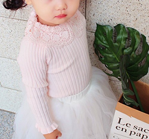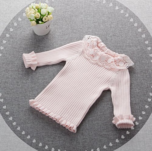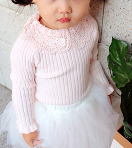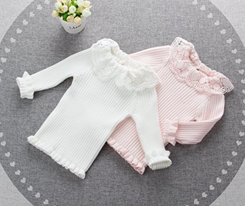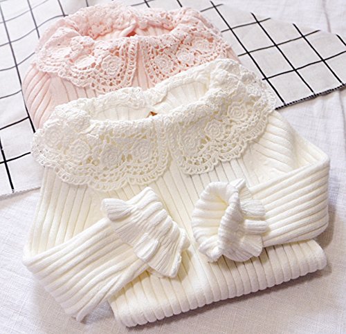 (プチプライム) Petit Prime フリフリ タートル リブ ニット レース リボン 長袖 ホワイト 80