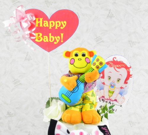 パンパースのおむつで作ったお祝いケーキです。 お誕生からすぐに使えるママに大人気のSassyのハンドタオルとミュージックおさるさんでデコレートしてあります。 ミュージックおさるさんは右手のスイッチを入れると軽い振動で音楽が流れます。 ベビーカーやベビーベットにどうぞ。 レッグウォーマーは寒い冬ばかりでなく、夏には紫外線から赤ちゃんの足を守ってくれます。 サイズ 幅、奥行き 約27cm、高さ 約40cm。 こちらの商品はご注文を頂きましてからの、制作になりますので発送まで2~3日の時間をいただきます。 細かい点を確認させていただきますので、ご注文主様にメールまたは電話にてご連絡させていただきます。