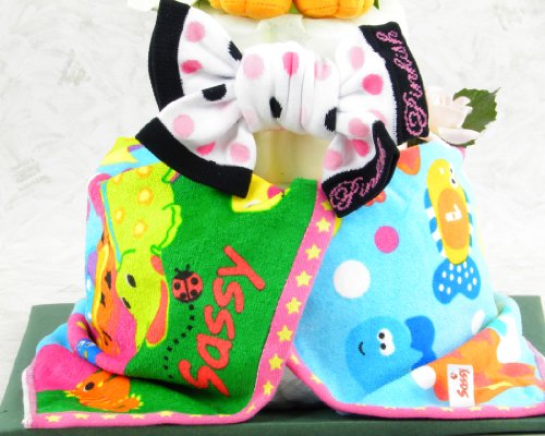 おむつケーキ 2段 Sassy サッシータオル&ミュージックおさるさん