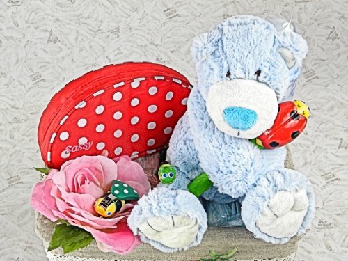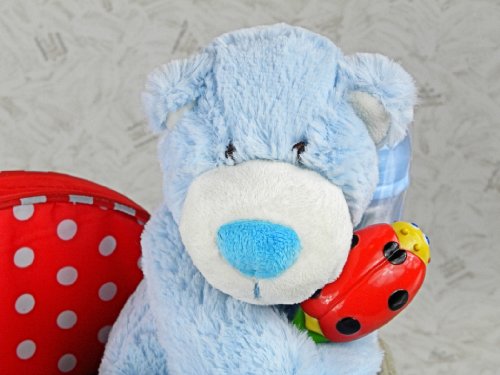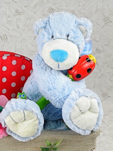 おむつケーキ バスケット Sassy サッシーベビーケアセット&ブルーベアー(パンパースSサイズ)