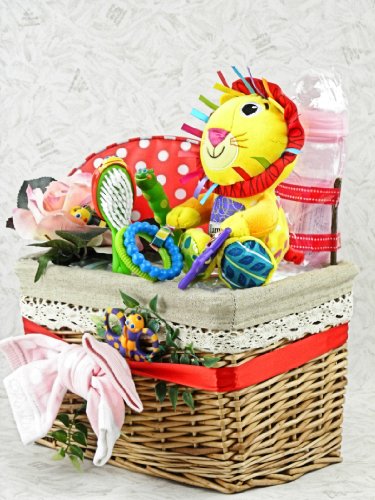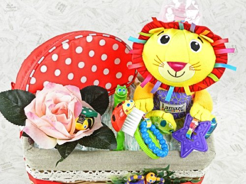 おむつケーキ バスケットG Sassy サッシーベビーケアセット&Lamaze ローガン・ライオン S