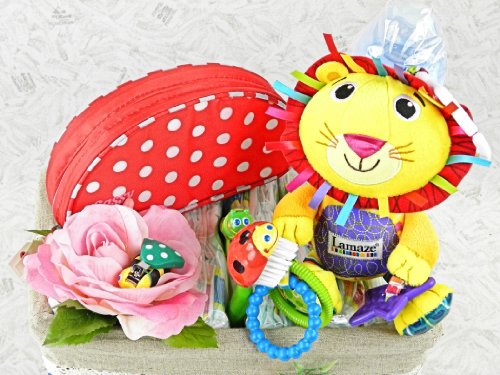 おむつケーキ バスケットB Sassy サッシーベビーケアセット&Lamaze ローガン・ライオン M