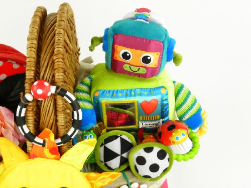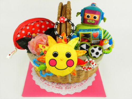 おむつケーキ ピクニックバスケット Sassy サッシーベビーケアセット、サンシャイン・ミラー&Lamaze ラスティ・ロボット