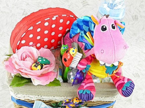 おむつケーキ バスケットB Sassy サッシーベビーケアセット&Lamaze ディーディー・ドラゴン M