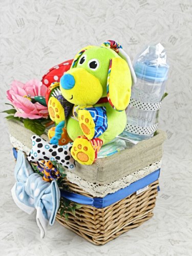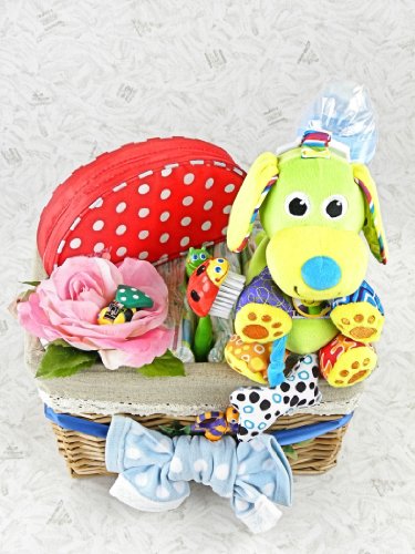 おむつケーキ バスケットB Sassy サッシーベビーケアセット&Lamaze パピー・スクイーク S