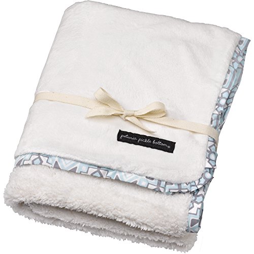 Ultra soft velour lined with a smooth printed trim of a light sky blue, misted grey and eggshell mosaic- inspired design;Plush on one side and smooth ultra-soft velour on the other;Trimmed in a flat ruffle of rich Petunia Pickle Bottom Chenille fabric with box-pleated corners